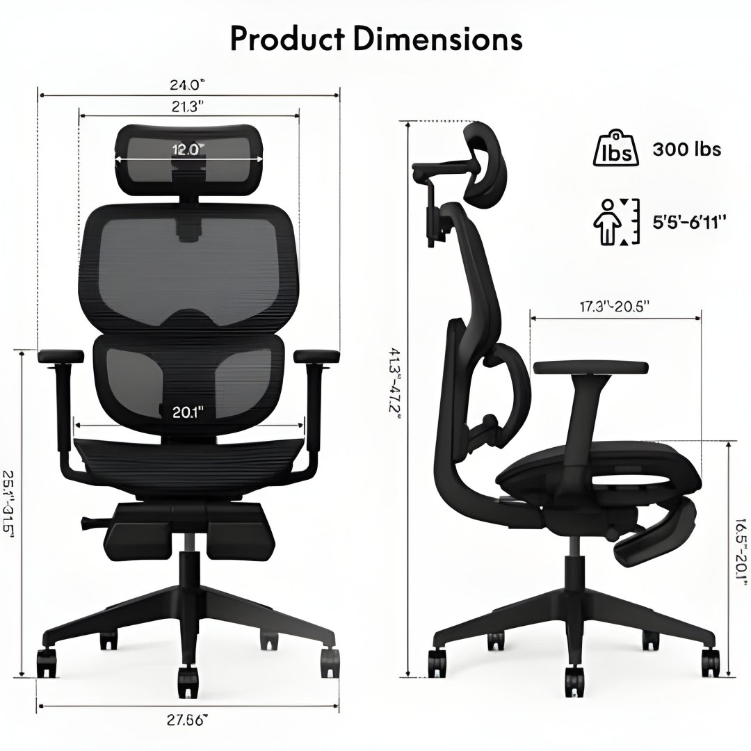 Ergonomic Mesh Executive Office Chair with Headrest Support